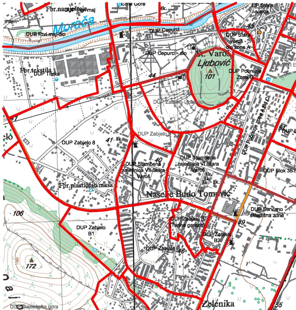 Fokusirali smo se na detaljne urbanističke planove koji su sastavni dio Zabjela kao naselja. To su DUP Zabjelo-Ljubović, DUP Zabjelo 8, DUP Zabjelo 9, DUP Zabjelo 10, DUP Zabjelo B, DUP Zabjelo B1, DUP Zabjelo B2, DUP Stambena zajednica Stara Varoš VI, DUP Stambena zajednica Stara varoš VII.
