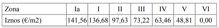 Iznos naknade po kvadratnom metru neto površine objekta razlikuje se u zavisnosti od dijela grada u kojem se građevinsko zemljište nalazi. Djelovi grada, to jest detaljni urbanistički planovi, grupišu se u zone, a svaka zona se vrednuje različito po kvadratnom metru.